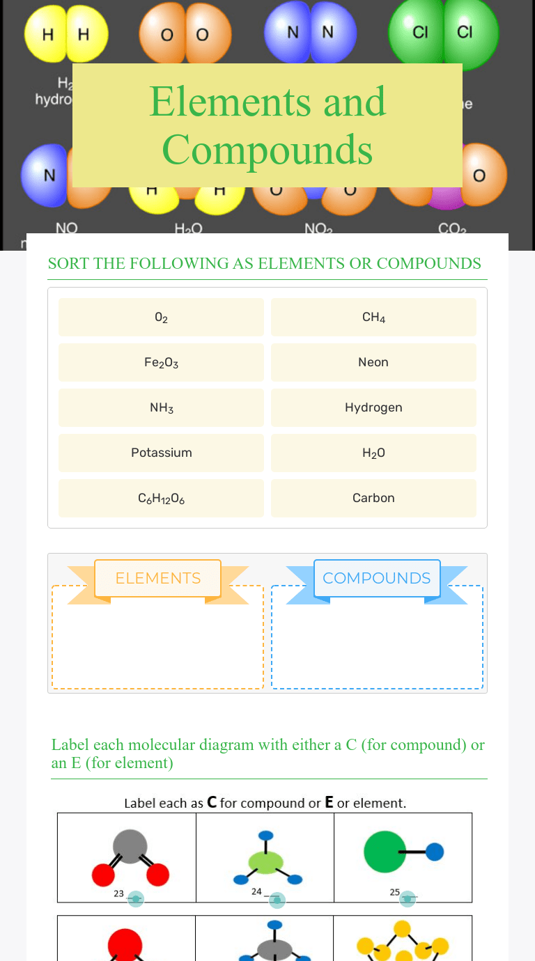 Elements And Compounds Worksheet / Elements Mixtures And Compounds Teaching Resources /